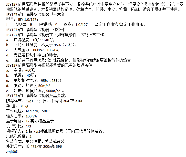 JBY127矿用隔爆型监视器 本安型 抗震防潮 使用寿命长